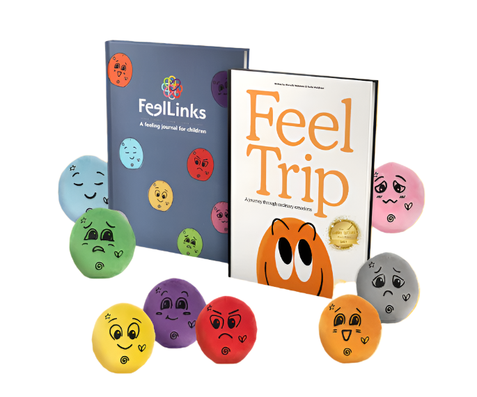 The ultimate feelings package! This bundle includes all of our hands-on resources;Ā FeelLinksĀ emotion plush dolls +Ā FeelLinksĀ feelings journal +Ā Feel Trip: A journey through ordinary emotions!Ā The best of it all right here!