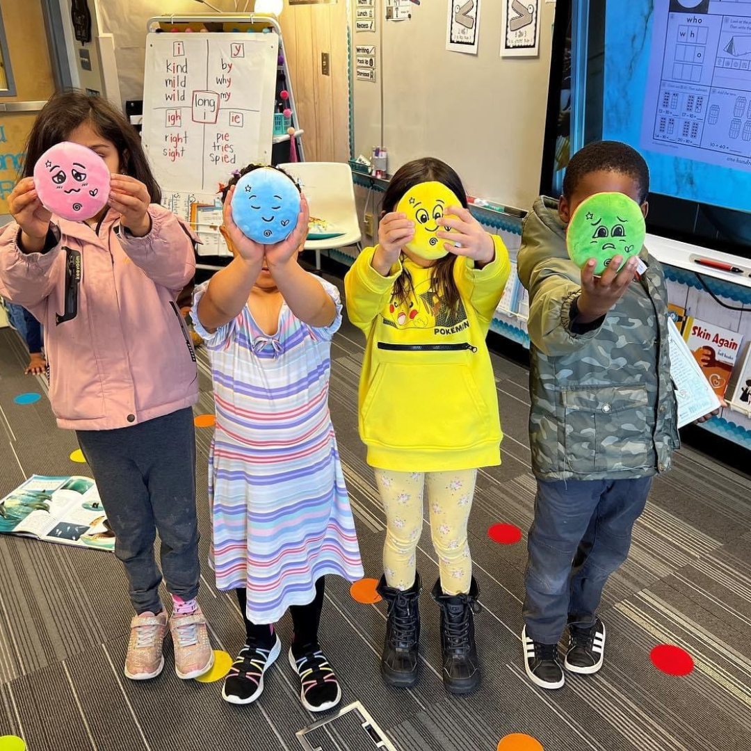 Before reading aloud, we talk about feelings and introduce our feeling plush dolls, characters that show up in the book! We ask questions before reading to gain an understanding of their prior knowledge. We also ask students to think as we read, 'What is our purpose is for writing our story?'